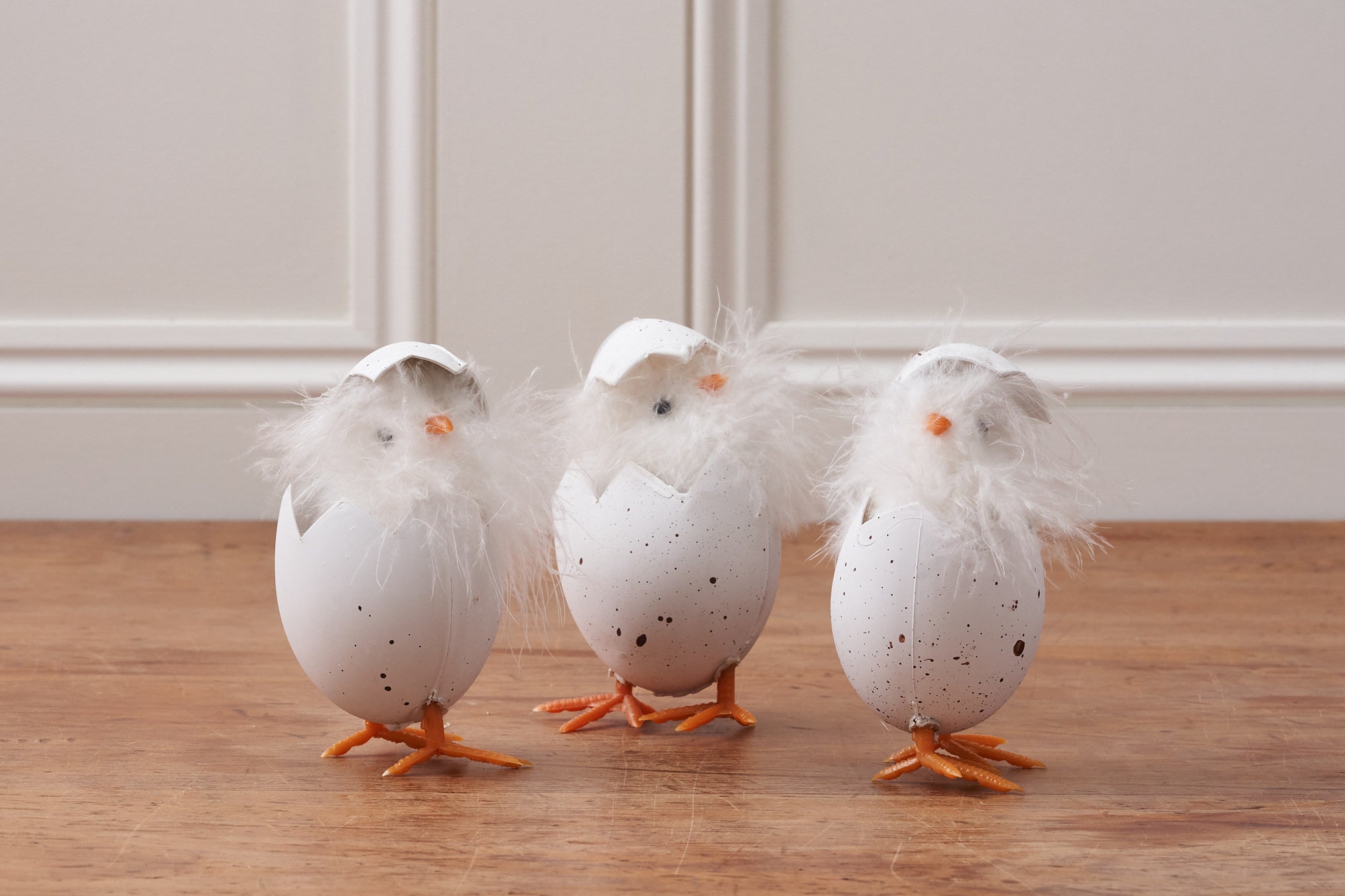 A charming set of three standing white chicks, and with their simple, timeless design they are perfect for decorating shelves, tables or Easter displays, adding a soft and cheerful touch to your spring décor.