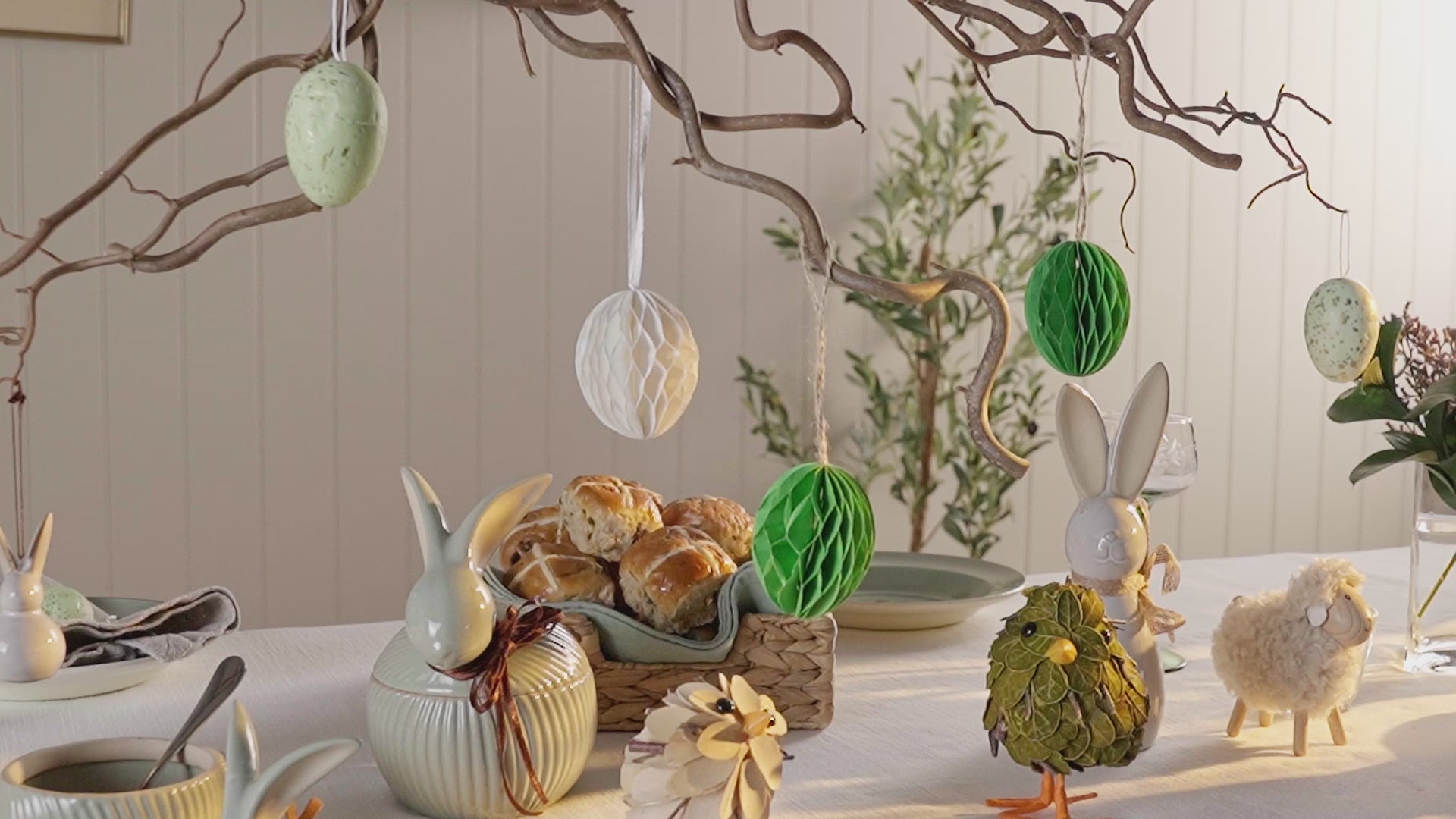 Bring a pop of spring colour to your Easter decorations with this set of four vibrant green hanging Easter eggs. Versatile and fun, these eggs can adorn your spring dinner table or enhance a larger Easter display.