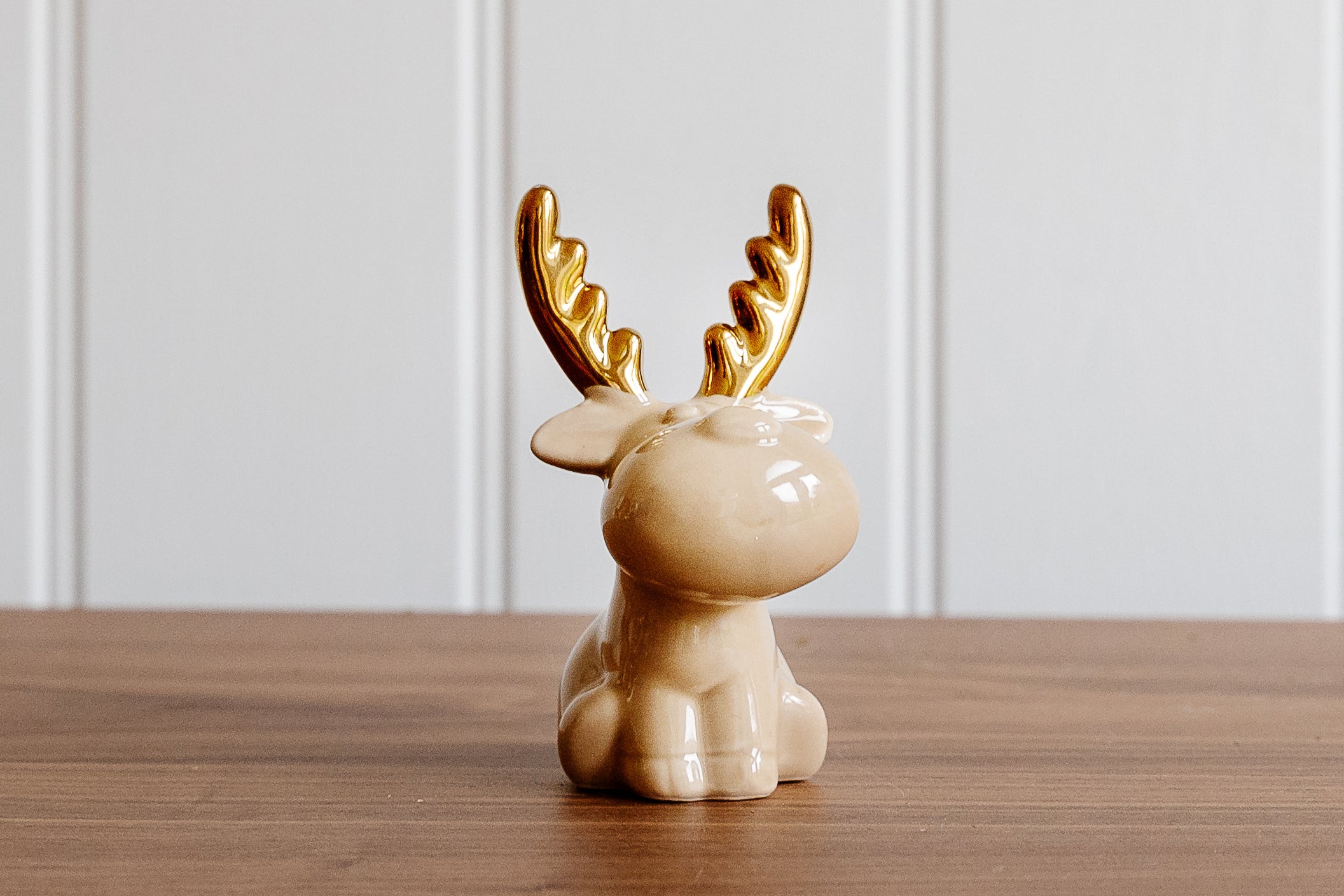 What Christmas would be complete without a reindeer? Add a touch of gold and brown to your Christmas decorations with this sweet stunning reindeer, part of our elegant ceramic collection.